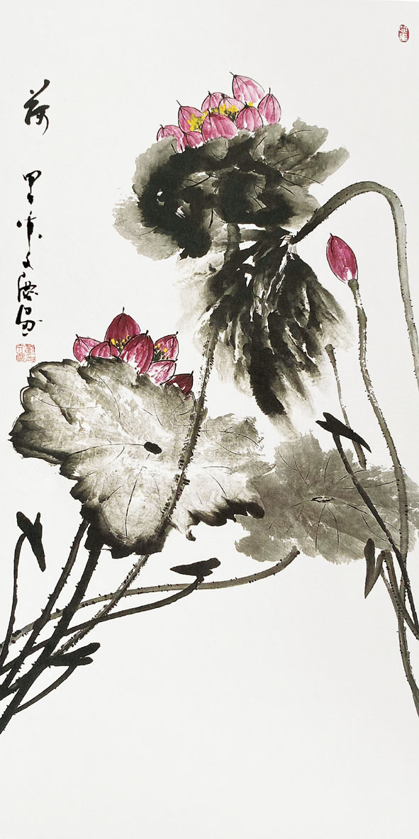 劉文慶的牡丹畫成就得益于他鍥而不舍地藝術追求。他對書畫的藝術的追求是苛刻的,每每下筆,總是反復構思,反復琢磨。他繼承國畫的優秀傳統,取長補短,構思精巧,畫面清新亮麗,色澤明艷。他對牡丹是摯愛的,長期對牡丹的品種、顏色以及生長過程悉心觀察,認真寫生,從而達到熟其性,取其形,得其神,形成清新脫俗、形神兼備的藝術風格。