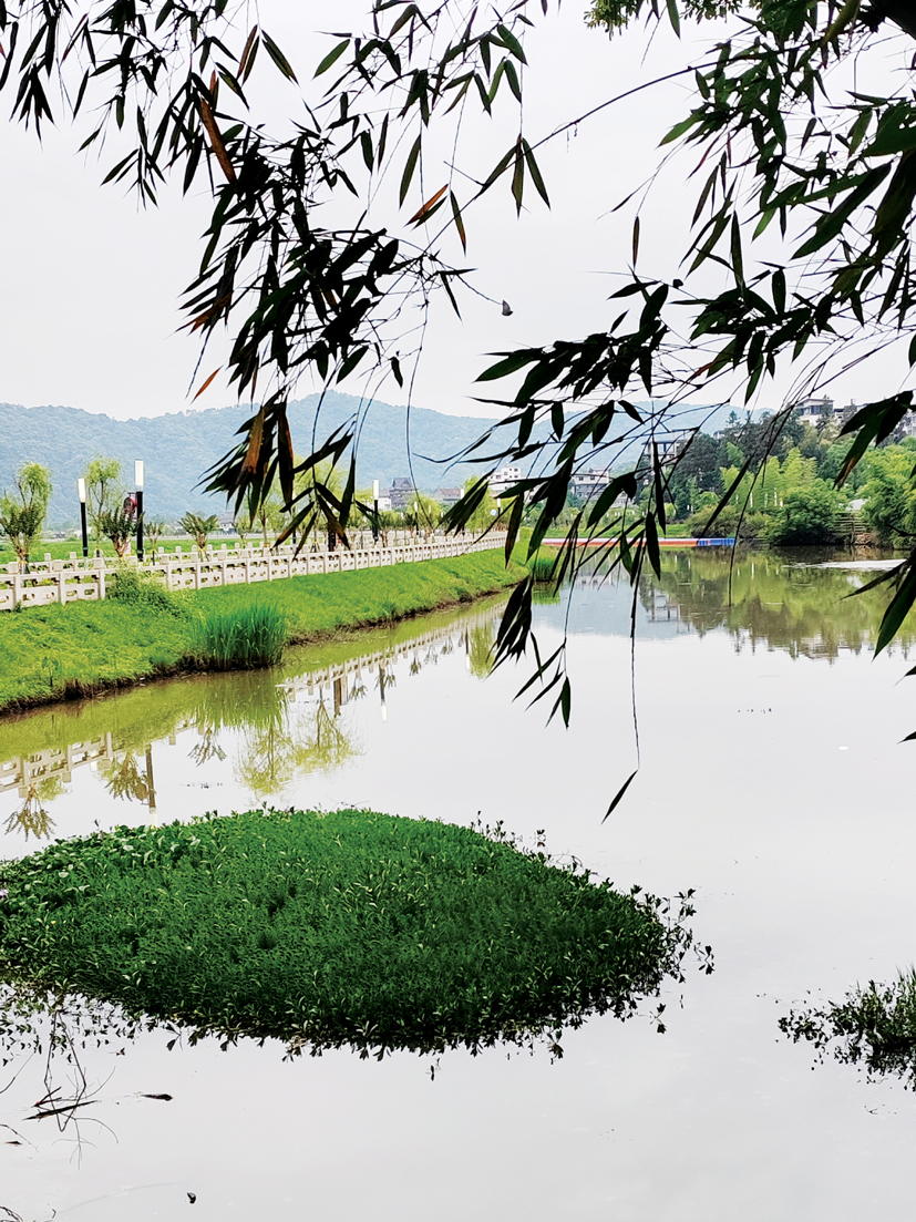 清晨邁步,踏上蜿蜒綿延的沿河棧道,我等仿佛進(jìn)入詩(shī)畫的海洋,藍(lán)天與白云,青山與湖水,紅花與綠樹,田野與村莊串連一體,相映成趣,婉如一個(gè)個(gè)曲譜上跳動(dòng)的音符,吟唱于山水之間。湖面,飄渺著青莎,裊娜迎人,時(shí)而與魚兒嘻戲,時(shí)而向遠(yuǎn)山招手;山坡上,蒼翠欲滴,霧氣搖曳著朦朧,又像淡雅的絲綢,半醒半夢(mèng)地纏繞在山的腰際,山水各色,交輝相映,美侖美奐,美不勝收。