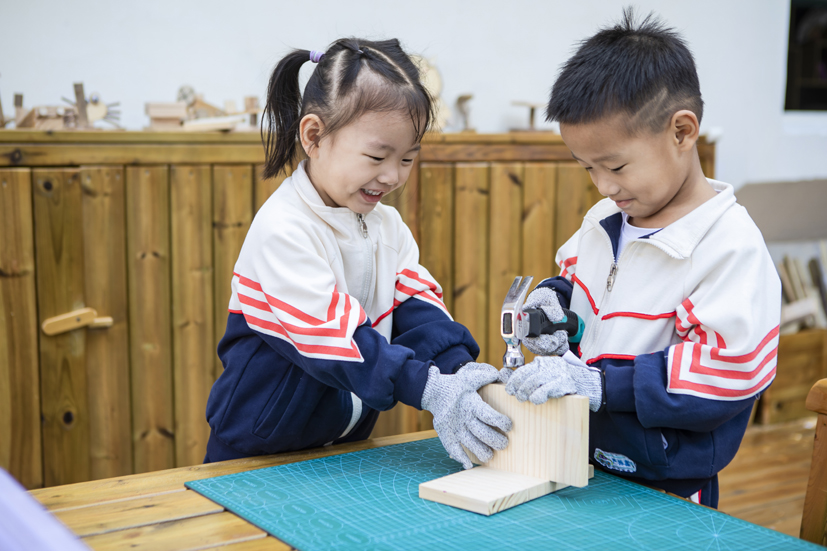 幼兒園在戶內外空間的建設、生活環境的創設、游戲材料的豐富等都以幼兒需要和興趣為導向,以幼兒發展為根本。在這個“樂園”里,師幼一起探索著身心快樂的要義,幼兒學會快樂生活、樂享游戲、樂于學習,獲得寶貴的成長經歷。而教師們愿意做“樂園”里的耕耘者,用心陪伴和用愛守護的支持者。順應兒童興趣需求,創設了探究的游戲環境,幼兒可以從室內玩到戶外,從地面玩到平頂;戶外有各類果樹、茶樹、花卉、蔬菜;有山坡隧道、戰壕堡壘、沙水管道、小橋坡道,這樣巧奪天工的天然設計,讓幼兒感覺到自然天成和身臨其境的情境教育;順應發展需求,創設可學習的游戲環境,有娃娃家、種植區、探究區、藝術區等,孩子們在草地里搭帳篷,石頭當鍋樹葉抵菜、拿著顯微鏡觀察茶葉的葉脈,在水池里用不同工具打撈泥鰍,在涂鴉墻上盡情潑墨,孩子們在原汁原味、不事雕飾的游戲中,盡顯野趣;順應個性化需求,創設可嘗試的游戲環境,建盞館里有孩子、家長和老師三方協力制作的非遺“建盞”,木工坊里,有孩子們稚嫩的小手制作了各具特色的木工作品,在操作中啟發心智、收獲有益經驗。