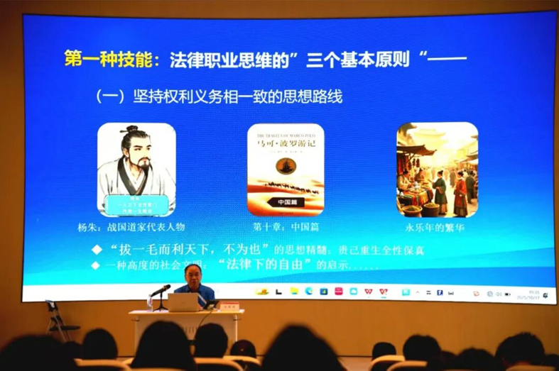 ——在 “拓視野” 層面,他從文明源頭切入,剖析中西方法治文化差異,指出西方法治 “權(quán)力制衡” 與中國(guó)法治 “德法共治” 的不同特點(diǎn)。他強(qiáng)調(diào),法治建設(shè)不能走 “拿來主義”,新生既要借鑒西方優(yōu)秀法治成果,更要堅(jiān)守中國(guó)文化根基,在對(duì)比與思考中樹立法治文化自信,以寬廣視野看待法治事業(yè)發(fā)展。