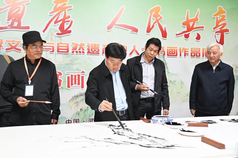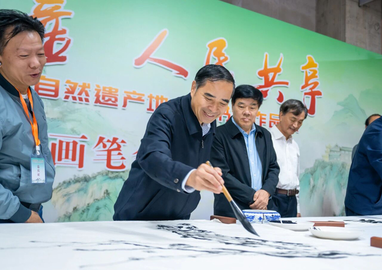 劉保黨指出,世界文化與自然雙重遺產,是聯合國教科文組織對“兼具絕美自然與深厚人文”之地的最高認證。此次活動通過人大系統的交流互動和書畫家的藝術創作,探索自然和文化融合的有力嘗試,是闡釋和展示遺產價值的創新表達的新路徑,也是對遺產保護初心使命的生動踐行。他希望,以此次書畫作品展為紐帶,四處“雙世遺”所在地能延續跨區域協作的良好基礎,在保護利用、價值闡釋、文化推廣、公眾參與等領域深化合作,讓遺產保護從“專業守護”走向“全民共享”。