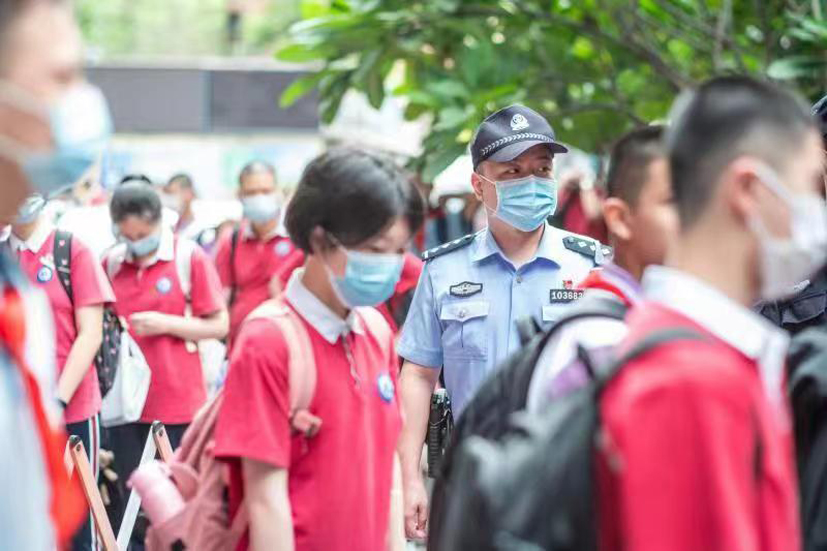 倉(cāng)前所民警在校園門(mén)口站好護(hù)學(xué)崗,保障師生安全。