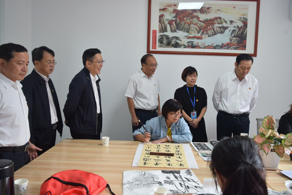 中共福建省委常委、組織部部長楊賢金(右一),南平市委組織部長林旭陽(左三)、邵武市委書記何光松(左四)等到邵武西門社區(qū)調研基層黨建陣地建設。