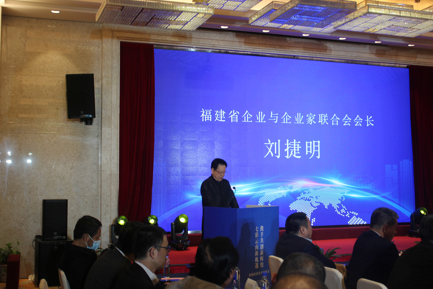 福建省企業(yè)與企業(yè)家聯(lián)合會(huì)劉捷明會(huì)長對(duì)遠(yuǎn)道而來的云南客人和參會(huì)的企業(yè)家代表表示熱烈歡迎,同時(shí)勉勵(lì)和期望福建商人走出去,也期待滇閩之間的企業(yè)加強(qiáng)合作互動(dòng),互惠互利。