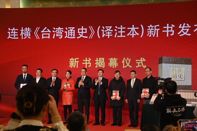 連橫《臺灣通史》(譯注本)簡體版新書發(fā)布會2月27日下午在北京人民大會堂臺灣廳舉辦。大陸有關方面負責同志、連橫先生后裔、兩岸專家學者、出版界代表等約100人出席。