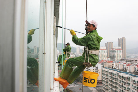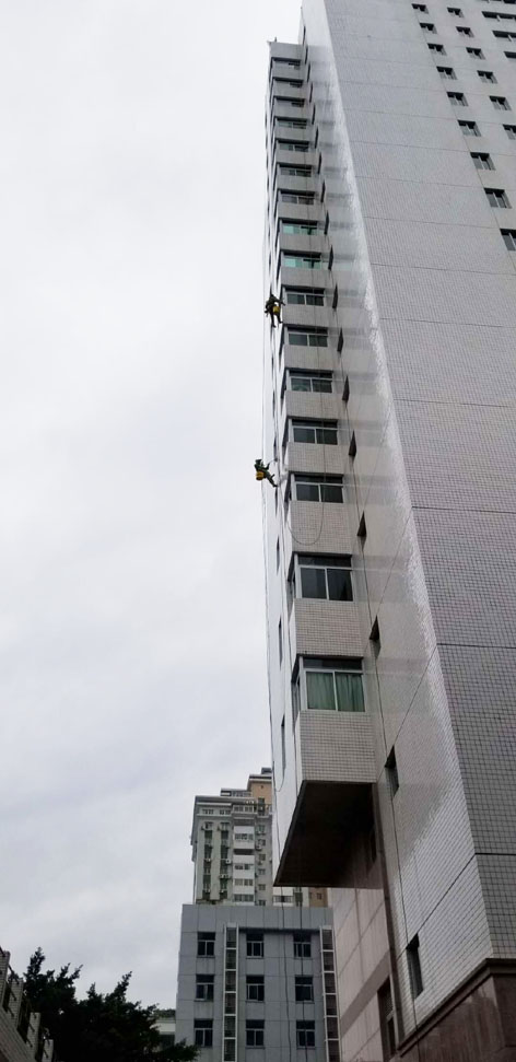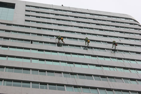 原來,都市中的高樓大廈外墻由于常年受到日曬和風吹雨打,以及大氣中有害的氣體和油煙等污染和化學反應的侵蝕,使得建筑物外墻產(chǎn)生了污垢和風化,既影響了建筑物的標致和市容,又損壞了建筑物。為了城市的整體美觀,在現(xiàn)代都市中滋生出一種新興的行業(yè)——高樓外墻清洗。這些“空中飛人”則是利用高空操作繩、安全繩、高空坐板(或吊板、吊籃等)針對大樓外墻材料進行自上而下刷洗清潔制劑、清洗污垢灰塵的高空工作者,從事這種行業(yè)的人員必須經(jīng)過專業(yè)培訓并頒發(fā)外墻清洗資格證才能上崗。