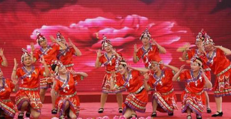 4月12日,“放歌三月三·逐夢(mèng)新時(shí)代”2019南平歡慶畬族“三月三”畬族文藝演出在建甌高鐵新區(qū)舉行。文藝演出現(xiàn)場(chǎng),畬歌飛揚(yáng)。演員們擲地有聲地敲打出《戰(zhàn)勝鼓·凱旋》(省非物質(zhì)文化遺產(chǎn)),為當(dāng)天的文藝匯演拉開序幕。表演者身著民族服飾,原生態(tài)畬歌聯(lián)唱《歌唱畬族三月三》,用山歌傳唱黨的扶貧政策,表達(dá)對(duì)黨的民族政策的擁護(hù)和感謝。舞蹈《茶鄉(xiāng)美》,用舞蹈跳出畬族群眾對(duì)新生活的向往。情境劇《狩獵舞》、歌伴舞《鳳凰與山客》等節(jié)目在視覺(jué)、聽覺(jué)上向觀眾展示了畬族藝術(shù)之美,更是將現(xiàn)場(chǎng)的氛圍一步一步推向高潮。豐富多彩又極具民族特色的表演讓觀眾直呼過(guò)癮、拍照留念。文藝演出期間還穿插了有關(guān)民族團(tuán)結(jié)知識(shí)問(wèn)答,體現(xiàn)了中華民族一家親,共同發(fā)展繁榮的愿望,現(xiàn)場(chǎng)氣氛熱烈。在演出現(xiàn)場(chǎng)還展出南平市各縣市畬族文化圖文展覽,展板不僅展示了畬族文化的魅力,更展示了畬族同胞一家親的民族情誼,許多人駐足觀看,了解畬家人文風(fēng)情、畬家體育、畬族彩帶編織技藝等文化習(xí)俗。