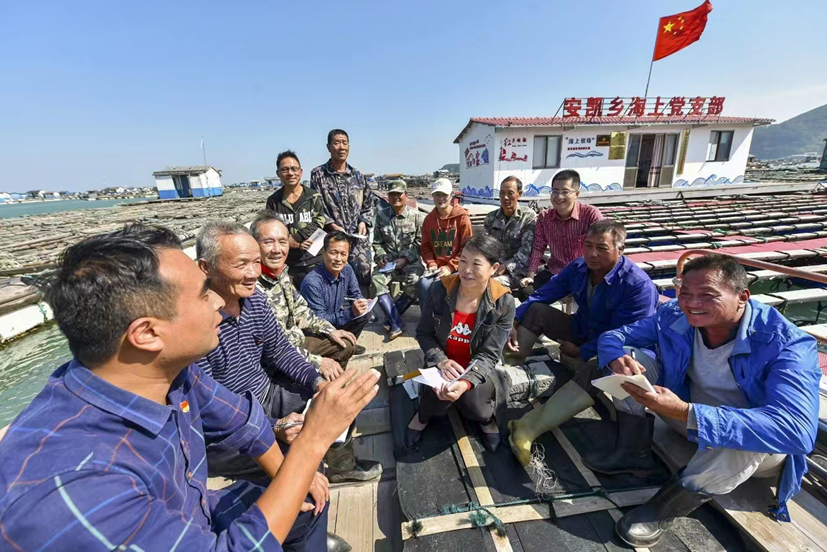 創新舉措,打造堅強堡壘。為擴大“紅色+”效應,將紅色文化融入群眾日常生產生活,成功推出安凱鄉海上黨支部特色黨建品牌。通過“整編”50多名沙澳灣海域養殖生產的漁民黨員,成立安凱鄉拓海興業黨支部,依托“633”工作模式(“6”即:以黨支部為軸心,統籌開展宣傳教育、協調議事、安全生產、服務保障、疫情防控、搶險救助等6項工作。“3”即:黨小組對漁船、人員網格化動態管理,確保信息收集“準確”、意見反饋“迅速”、聯絡溝通“暢通”,形成群防群治的工作格局。“3”即:發揮黨員、示范船、示范漁排等帶頭作用,進一步開展示范引導、人員管理、穩控應急等工作),切實服務3000多名海上養殖群眾,壯大產業規模,促進群眾增產增收,匯聚出黨建促鄉村振興的強大合力。